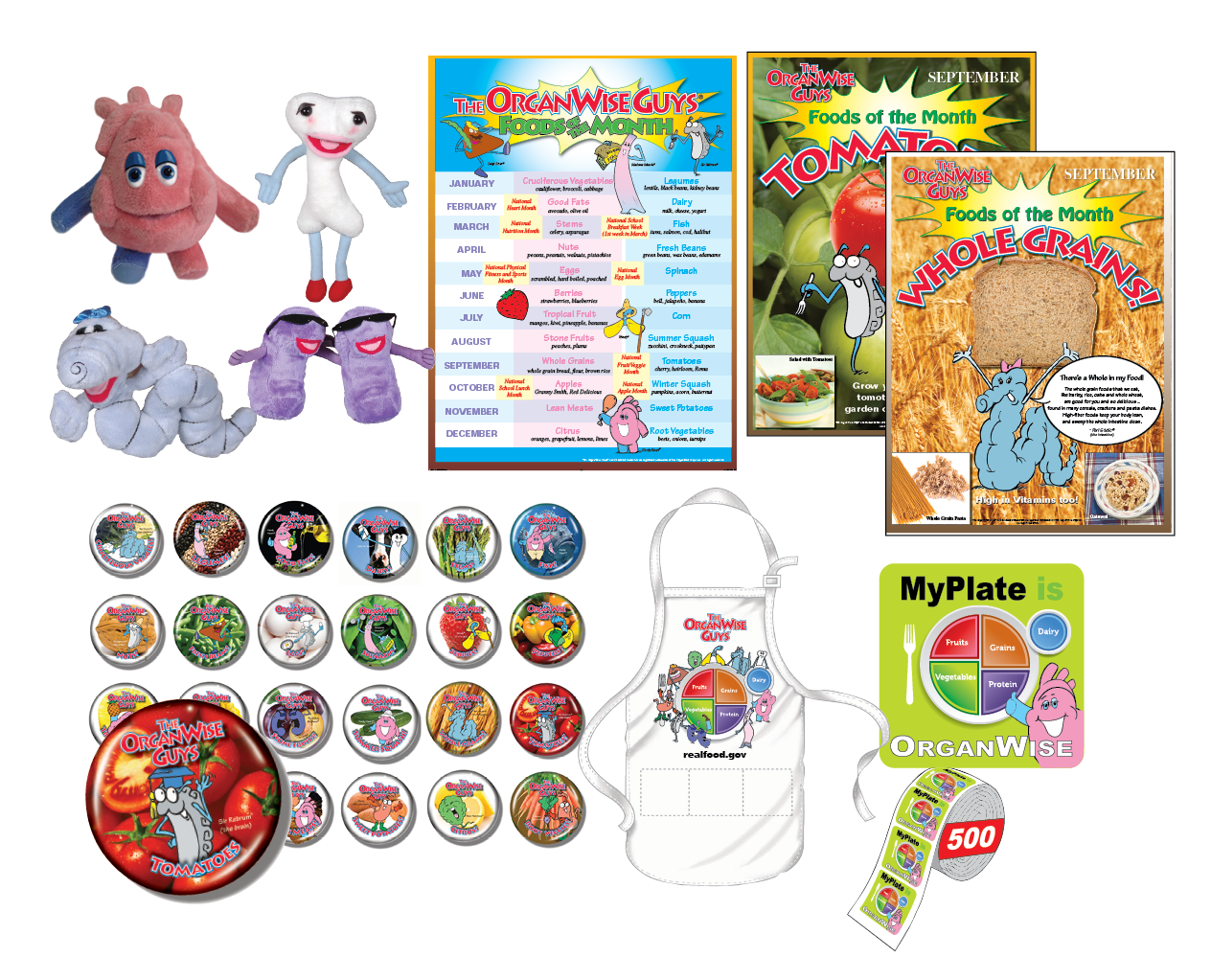 - (3) The OrganWise Guys MyPlate Aprons – Let these aprons serve as a teaching tool as you serve up MyPlate foods